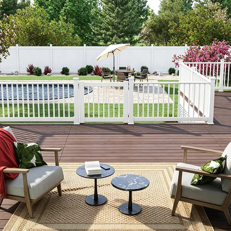 A szabványos Vionta vinyl védőkorlát rendszert úgy tesztelték, hogy ellenálljon a 200 font koncentrált oldalterhelésnek (kb. 90 kg), míg a megerősített típus (acél magoszlopokkal) 300-nál nagyobb oldalirányú terhelést is elbír. fontot. A termék kialakítása megfelel az ASTM D4477 szabványoknak és a Nemzetközi Lakossági Szabályzatnak (IRC R312) szakasz), a védőkorlát 3-5/8 hüvelyk közötti távolsággal, hogy hatékonyan megakadályozza a mászást vagy az áthaladást gyerekek. A helyi előírásokhoz szabott szerkezeti számítási dokumentumokat (mérnöki leveleket) tudunk biztosítani a az ügyfél régiója, hogy segítsen az építési engedély iránti kérelmek ügyében.